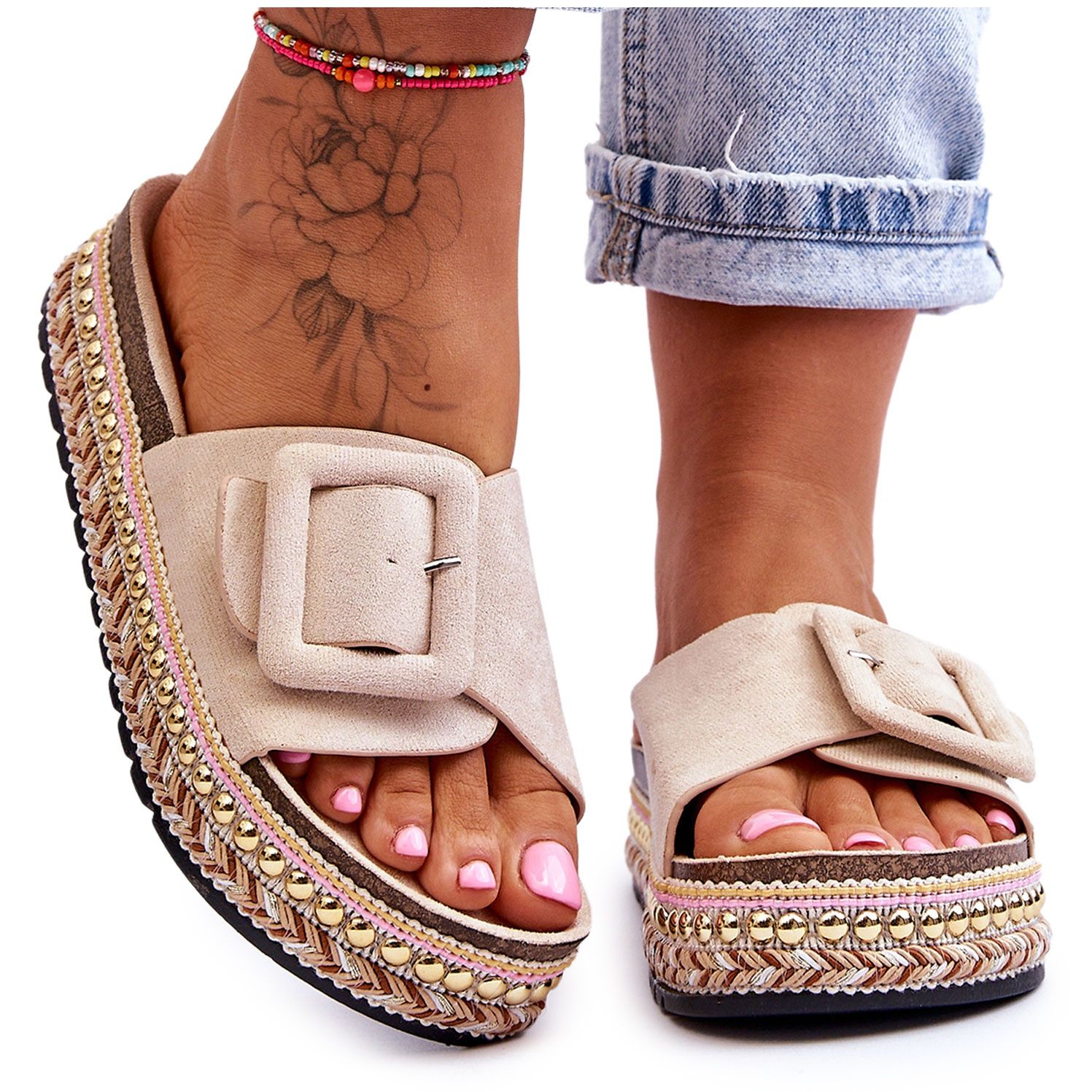 Elegancija i udobnost: bež Joyce japanke s ukrašenom platformom iz PS1