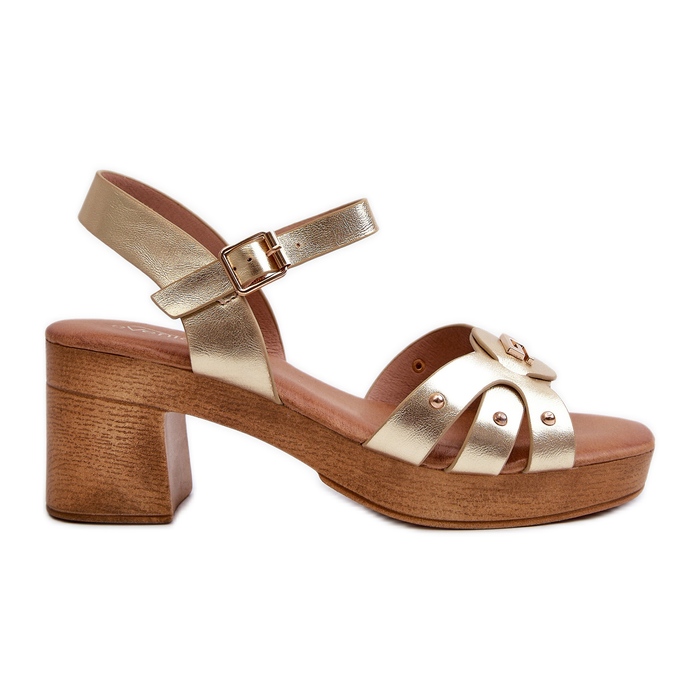 Ženske sandale na visoku petu od eko kože, zlatni Assames