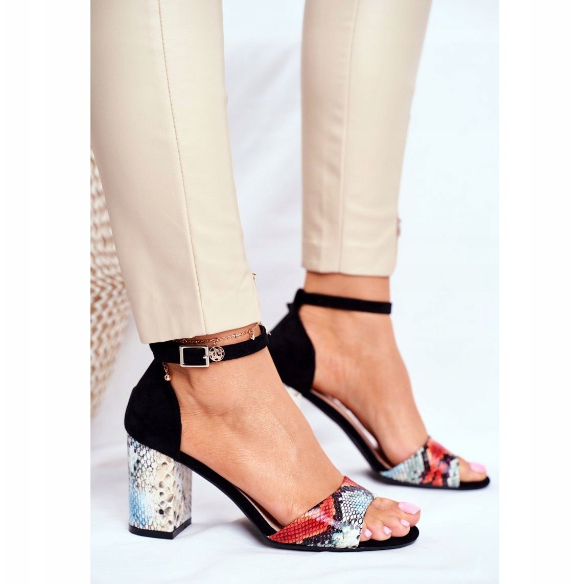 Model se kopča klasičnom kopčom koja olakšava obuvanje i skidanje. Zahvaljujući univerzalnoj crnoj i višebojnoj paleti, ove sandale savršeno će se uklopiti u različite stilove - kako ležerne tako i elegantnije.