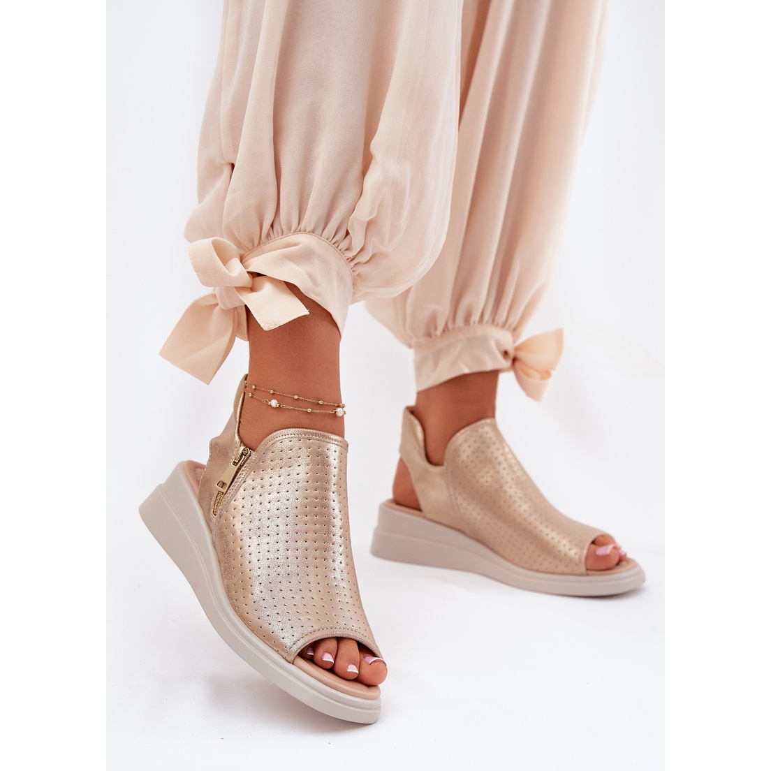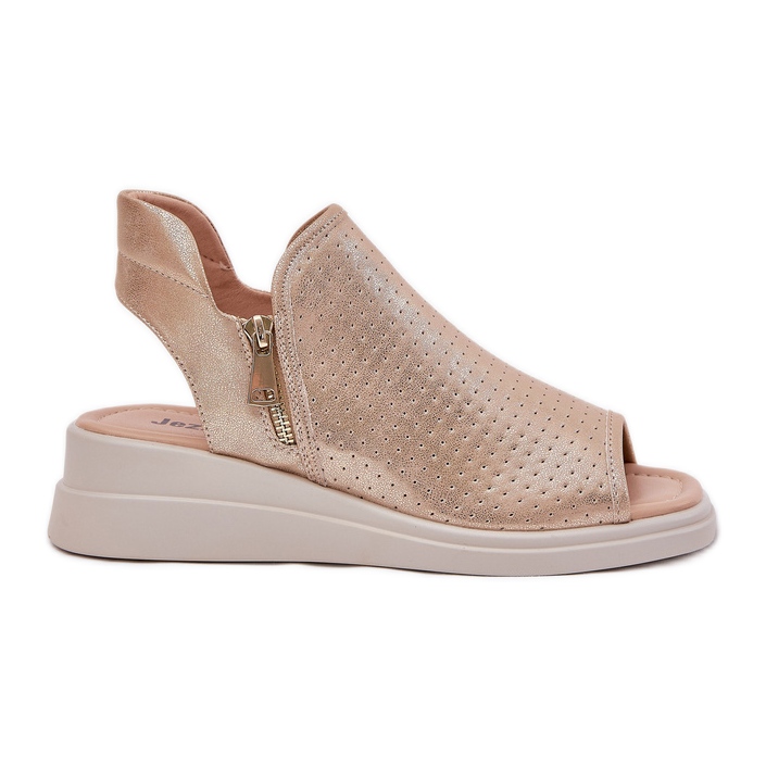 Obucite se ljetnim stilom zahvaljujući ženskim sandalama na Jezzi Wedgeu u elegantnoj zlatnoj boji. Napravljene od visokokvalitetne eko kože, ove sandale kombiniraju moderan izgled i udobnost, što ih čini savršenim izborom za sunčane dane. Veliki klin visok 5 cm pruža izvrsnu stabilnost, zbog čega uživate u svakom koraku.