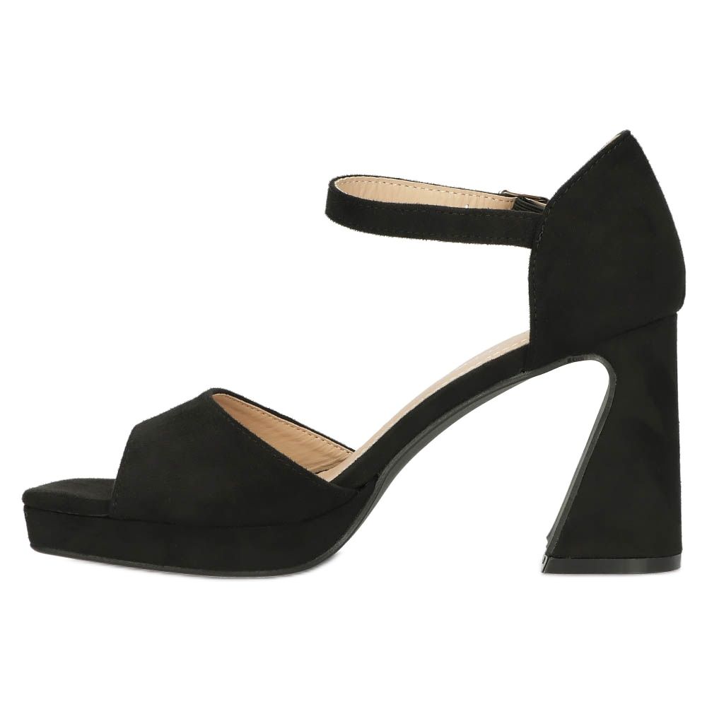 Antilop sandale Filippo Ds4489/23 u crnoj su elegantne i elegantne ženske cipele, savršene za proljetne i ljetne dane. Izrađene su od ekološke kože koja imitira antilop, što im daje jedinstvenu, plemenitu završnicu. Cipele karakterizira prosječna visina stupića od 8,5 cm, što znači udobnost i stabilnost pri hodu. Osim toga, u gornjem dijelu gornjeg dijela koristi se remen s kopčom koji osigurava još bolje pristajanje.