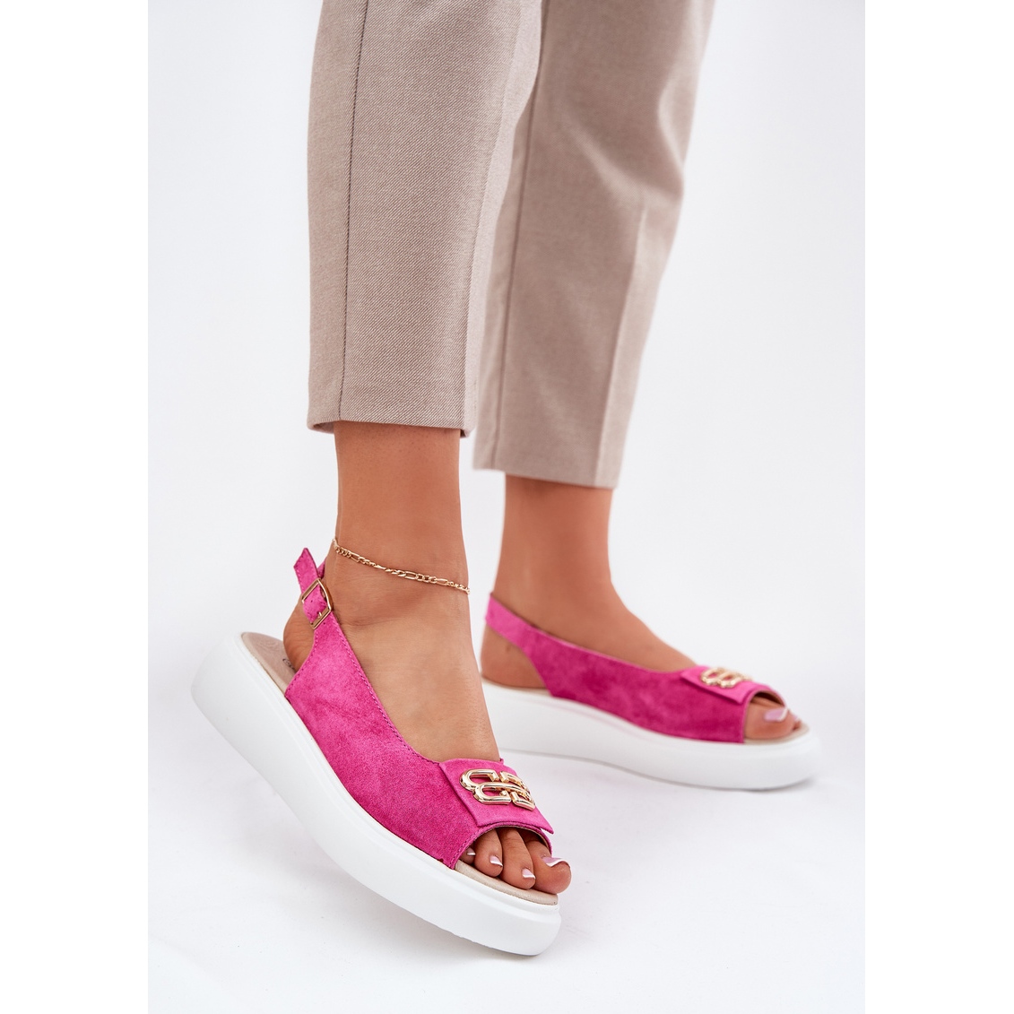 ** Ženske sandale od antilop sa zlatnim detaljima S. barski GR51-604 ružičasta fuksija **