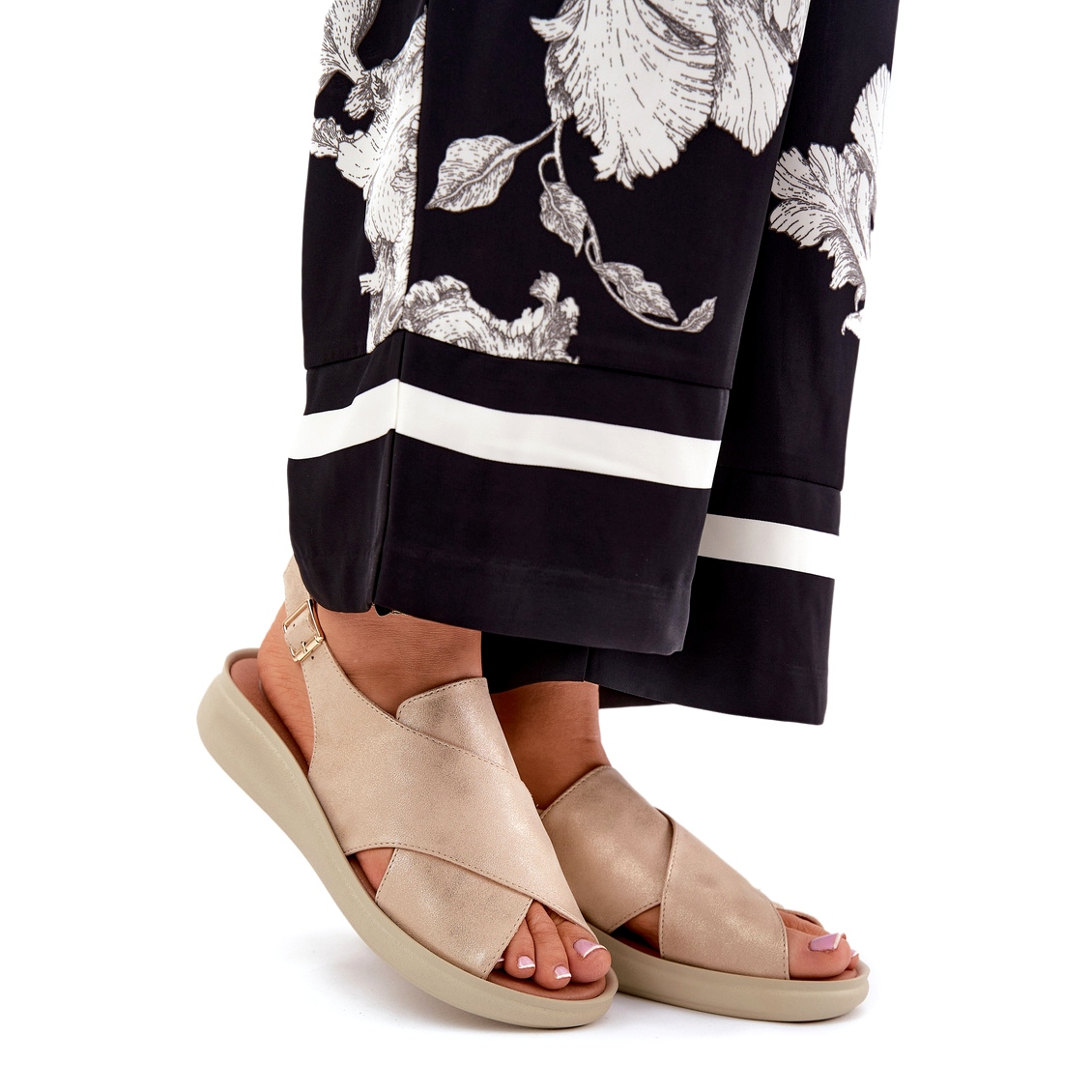 Ne samo savršen dizajn, već i praktičnost! Jeszi sandale savršeno se usklađuju s ljetnim haljinama, kratkim hlačama ili suknjama, nudeći beskrajne mogućnosti stila. Dodatna prednost je bež potplat, koji suptilno naglašava cjelinu.