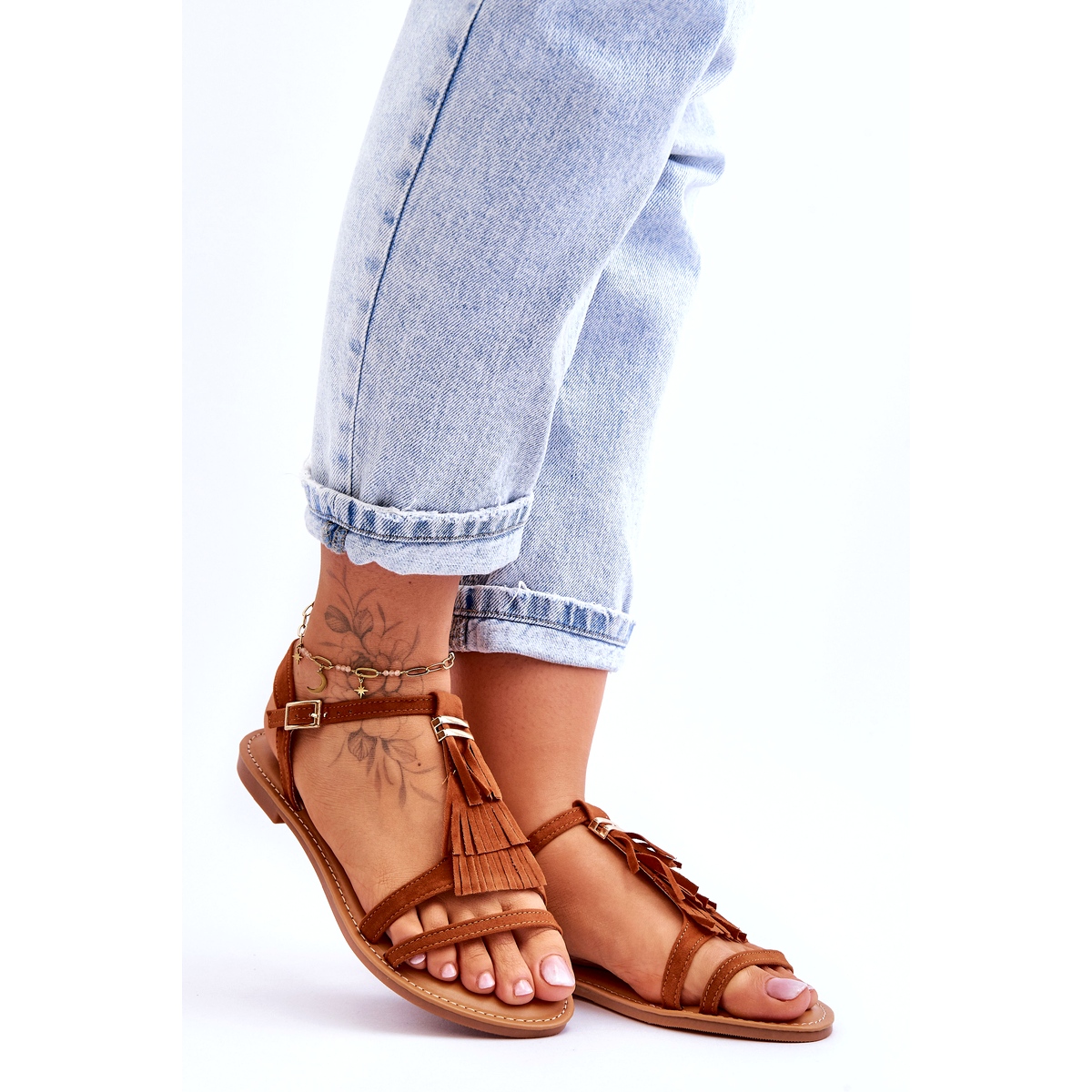 Pojedinosti: Ženske sandale ravne antilop boho smeđe Lucami smeđa