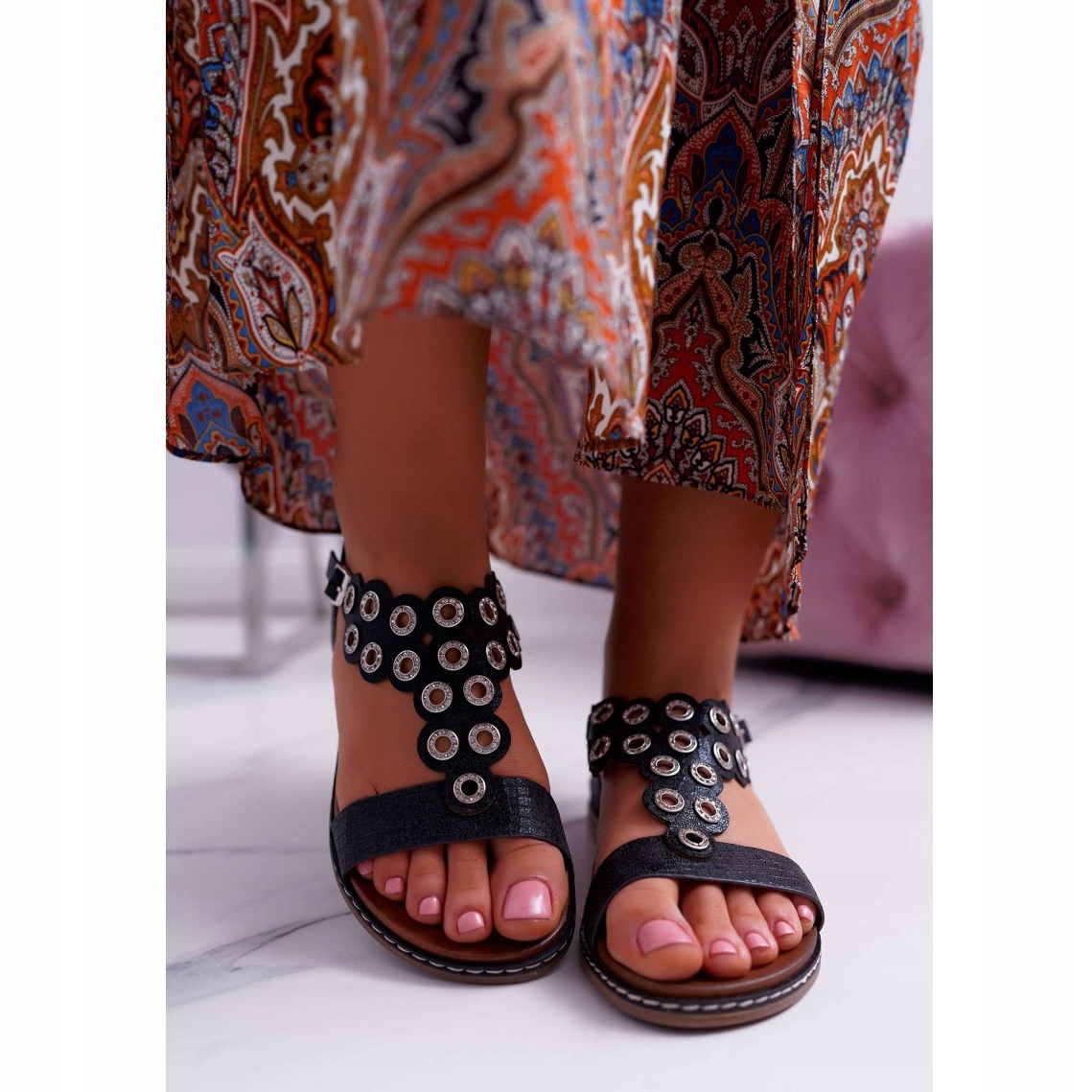 Ove sandale odlikuje klasičan kroj koji se savršeno uklapa u trendove sezone. Dodatno, impresivni ukrasi u obliku zakovica s cirkonima privlače pažnju i daju jedinstven karakter cjelini. Pričvršćene remenom oko gležnja, ne samo da nude stabilnost, već osiguravaju i udobnost nošenja, savršene za duge ljetne dane.