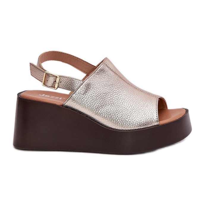 Detalji: Jezzi Ženske sandale s eko kožom na platformi i zlatnim klinovima zlatna
