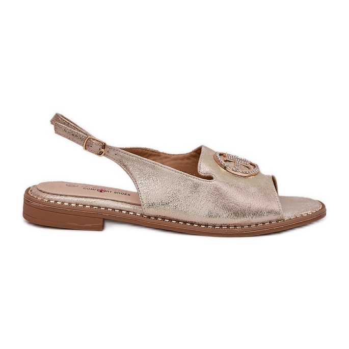 Ženske sandale s ravnim petom s ukrasom S. Barski KV51-002 u zlatnoj boji odličan je izbor za ljetne dane. Napravljene od visokokvalitetne eko kože, ove sandale kombiniraju eleganciju i udobnost, što ih čini savršenim za duge šetnje ili ljetne sastanke. Ravna peta s visinom od 2 cm osigurava udobnost cijeli dan, a podesivi pojas s kopčom omogućuje vam prilagođavanje individualnim potrebama.