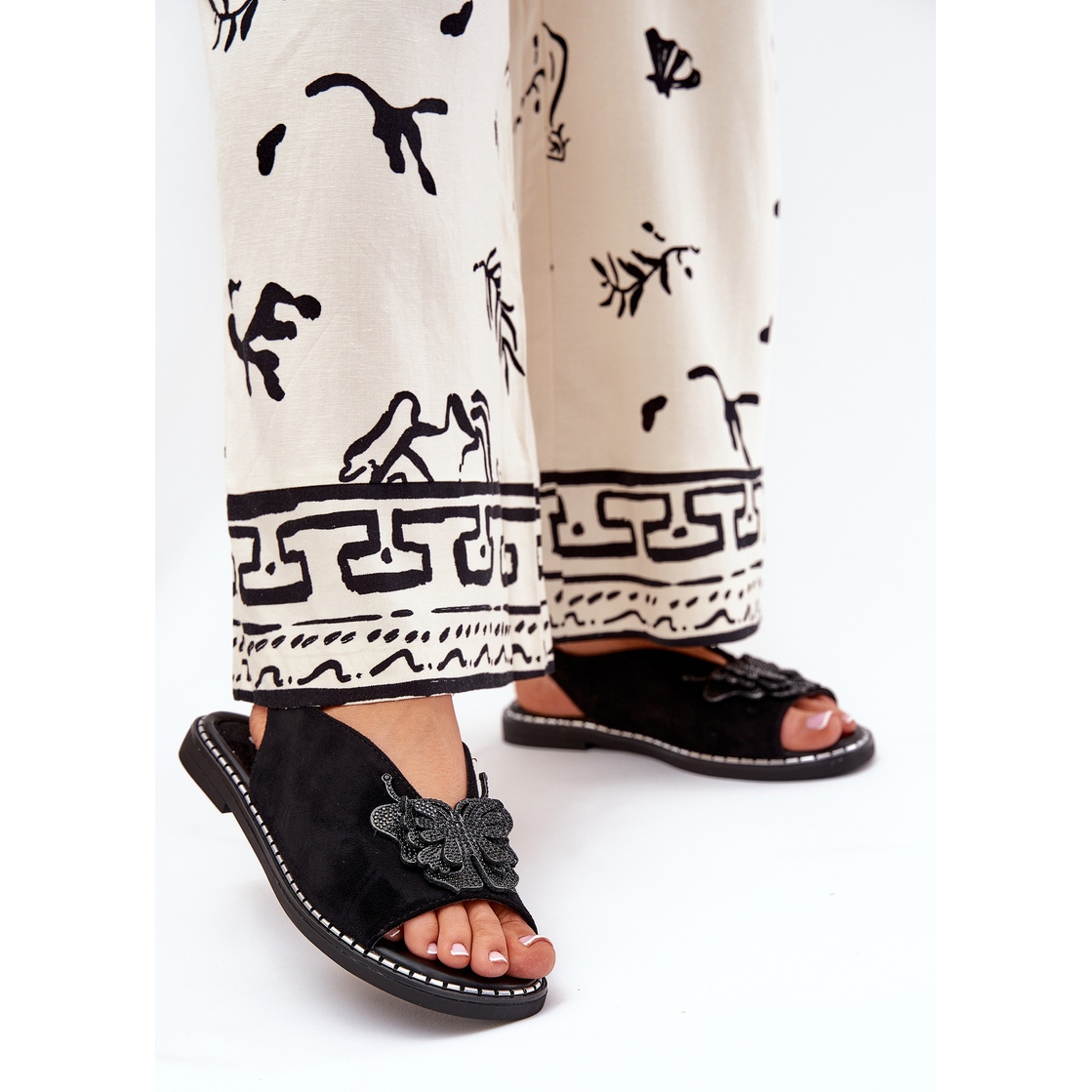 Jezzi Ženske sandale s ravnim slovima s crnim ukrasom crna