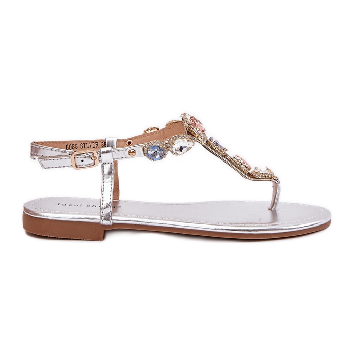 Inna marka Ženske sandale s ravnim slovima sa srebrnim kristalima srebro