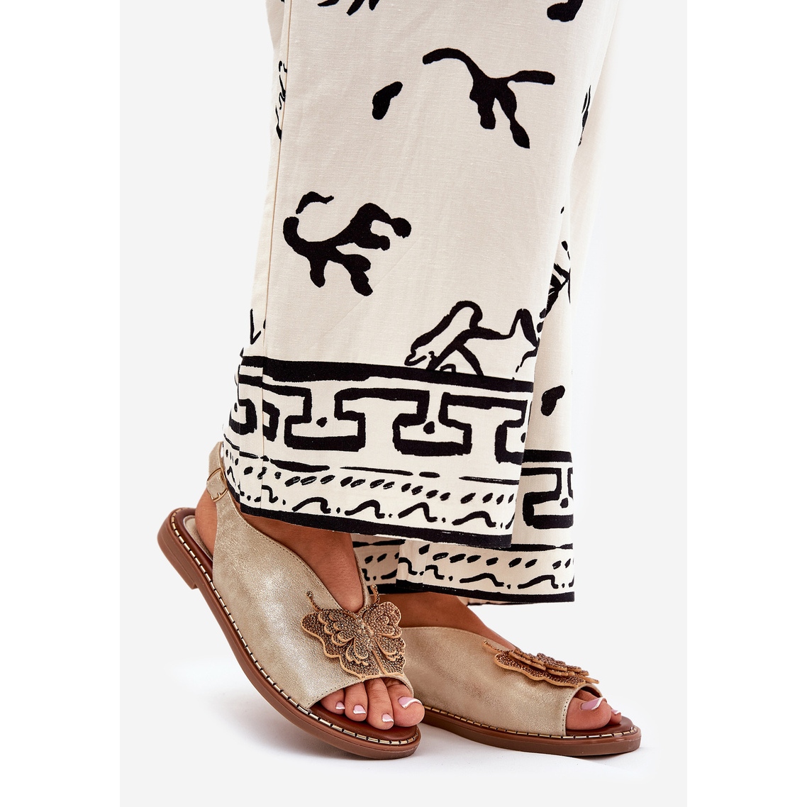 Jezzi Ženske sandale s ravnim slovima sa zlatnim ukrasom