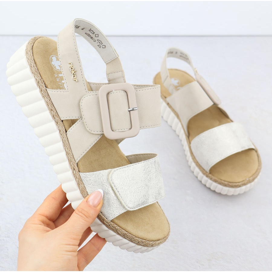 Rieker 69260-60 karakterizira jedinstveni dizajn, u nijansama vrhnja i bež boje, obogaćen osjetljivim srebrnim naglascima. Zahvaljujući standardnoj veličini, preporučuje se odabir veličine koju obično nosite, što će pružiti savršeno uklapanje.