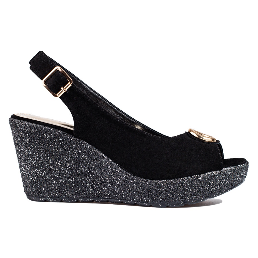 Ženske Shelovet crne sandale na klin od brušene kože crna