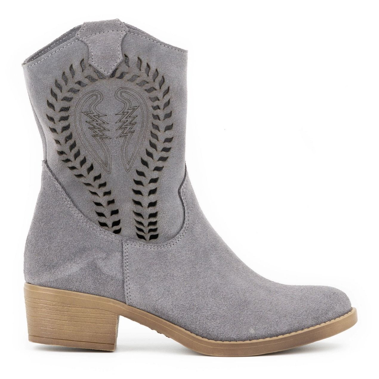 Elegantne i praktične Angela čizme prijedlog su žena koje cijene klasike s malo lakoće. Openwork Skin daje im suptilan, ženstveni karakter i poboljšava ventilaciju zahvaljujući koji su savršeni za toplije dane, ali ih se također može nositi tijekom cijele godine. Stabilna, 5 cm blok peta osigurava udobnost tijekom svakodnevnog hodanja, a bočna brava olakšava stavljanje. Neutralne, sive boje i bež potplat olakšavaju ih kombinirati s mnogim stilovima.