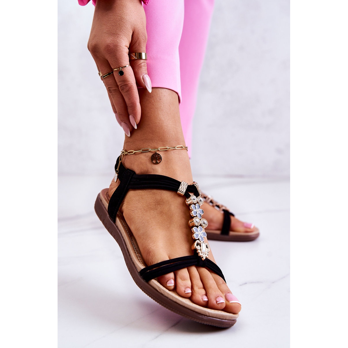 Pojedinosti: Ženske slip-on sandale Decorative Flowers Black Hypnotic crna zlatni