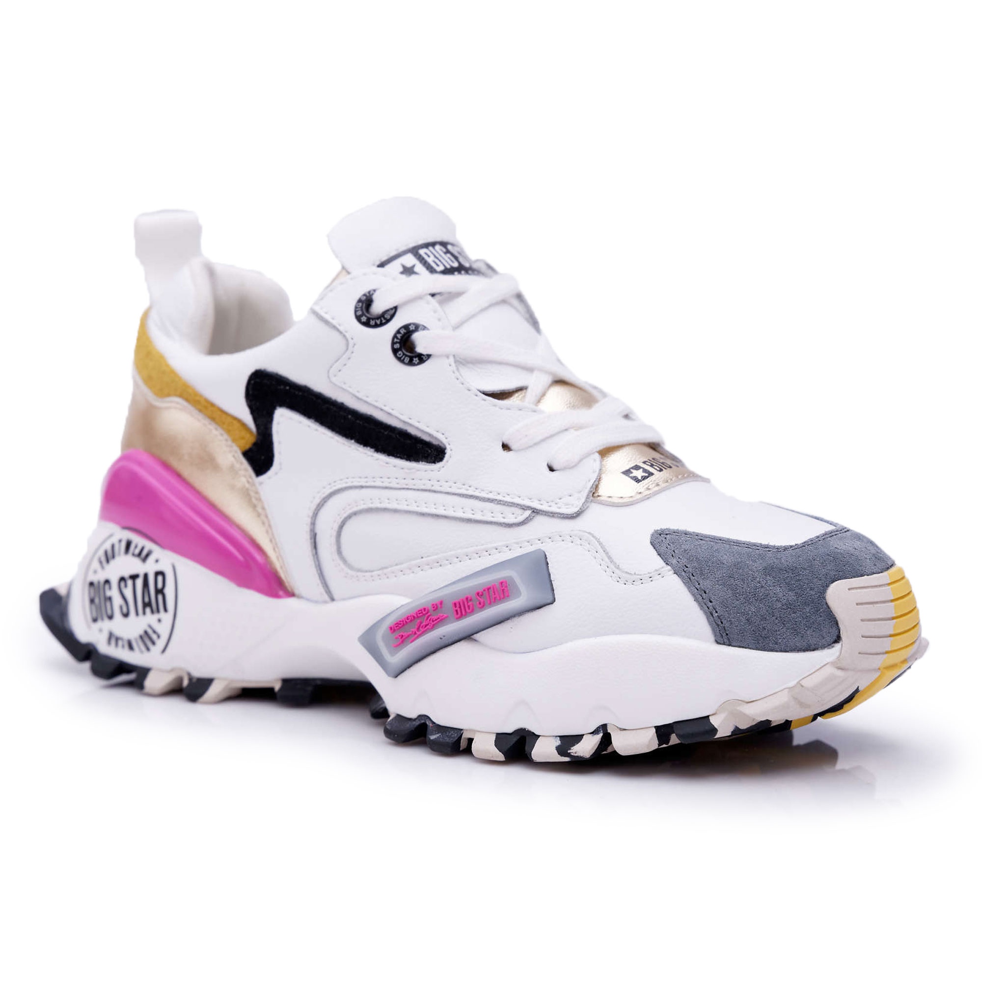 Ženska sportska obuća Big Star by Daniel Lopez FF274414 odličan je izbor za žene koje cijene udobnost i moderan dizajn. Ove raznobojne cipele, koje potpisuje brend "by Daniel Lopez", spajaju klasičan stil i odvažne akcente. Izvrsna baza je bijela koža kojoj su dodani umetci od zlata i brušene kože koji stvaraju upečatljivu kompoziciju.