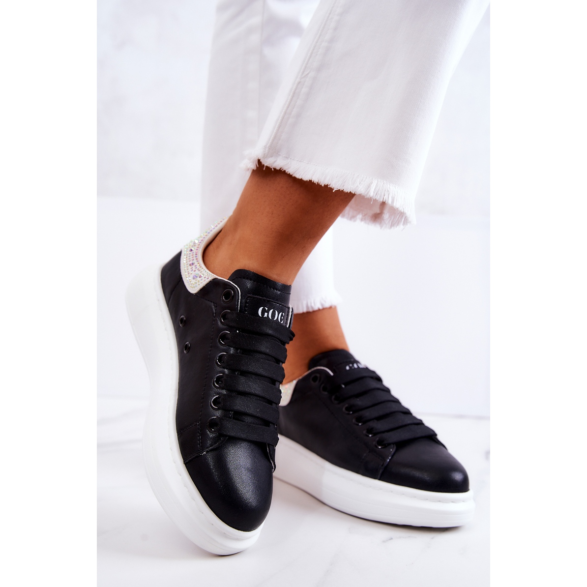 Ženske Goe JJ2N4052 Sportske cipele-crne i bijele tenisice koje kombiniraju udobnost sa stilskim, univerzalnim izgledom. Izrađena od prirodne kože, s mekom ekološkom kožnom umetom i nježnom platformom od 4,5 cm - savršena za svakodnevne stililizacije za jesensku/zimsku sezonu.