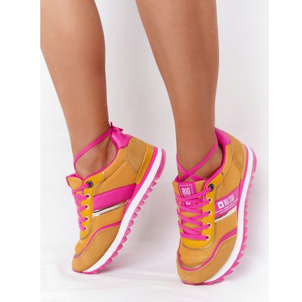 Detalji: Ženske sportske cipele Memory Foam Big Star HH274273 Žuta ružičasta