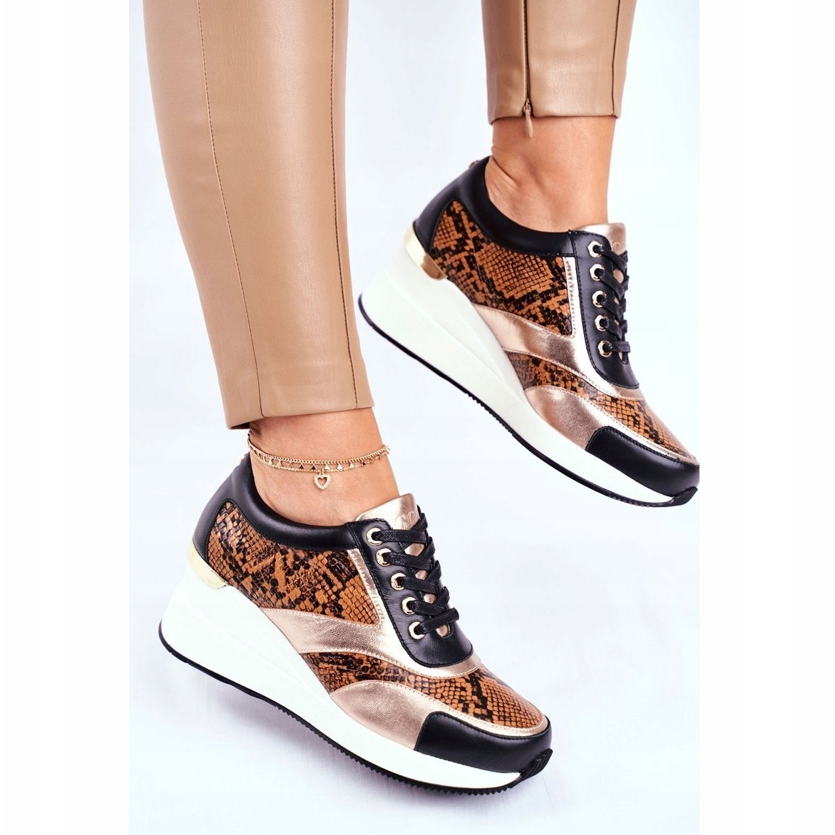 Elegantne i udobne tenisice iz Goea, izrađene od prirodne kože, koje kombiniraju sportski lik sa ženskom notom stila. Model se razlikuje suptilnim motivom životinje i osjetljivim usjevima s visinom od 6,5 cm, što diskretno produžava lik, bez odustajanja od udobnosti svakodnevne uporabe.