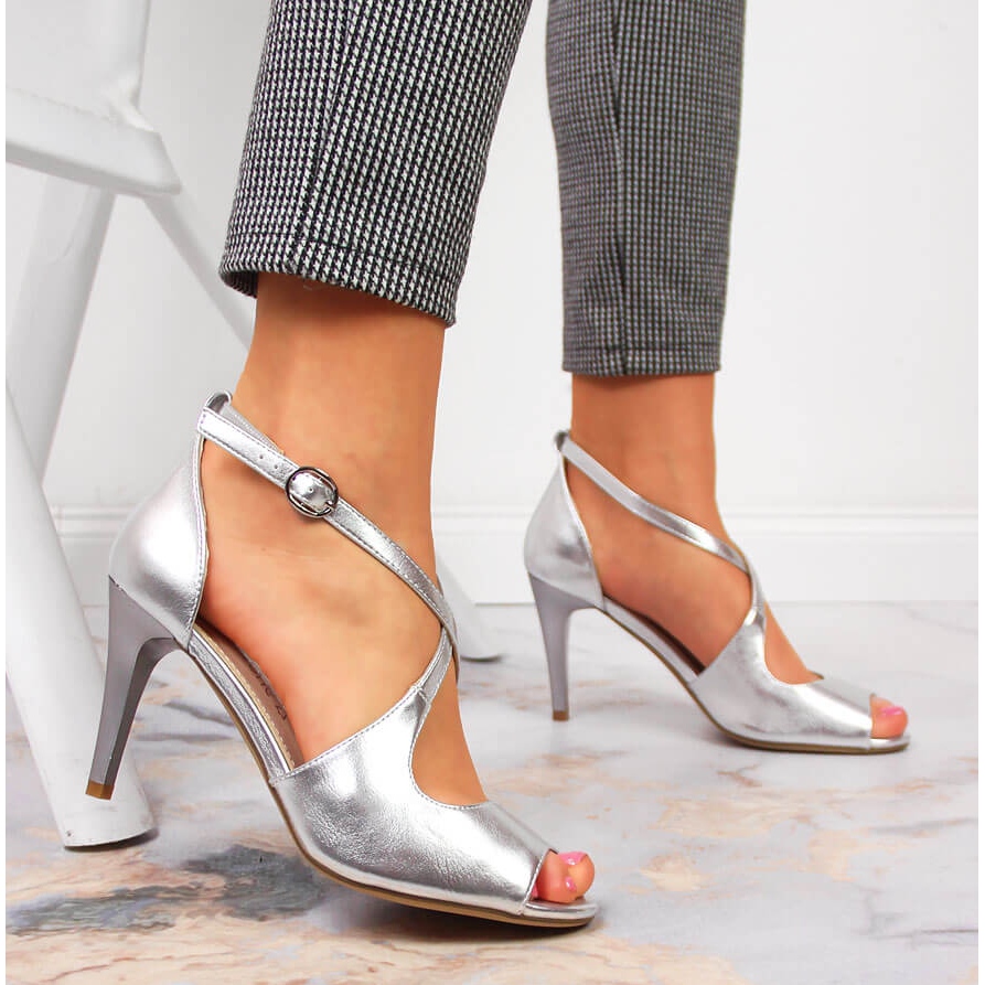 Srebrna boja sandala unosi sjaj u svaki styling - kako za posebne prilike tako i za svakodnevne izlaske. Zahvaljujući potpetici visine 9 cm, ove sandale optički izdužuju noge i čine ih vitkijim. Kopčanje kopčom omogućuje savršeno pristajanje uz nogu, što ih čini ne samo elegantnima, već i udobnima.