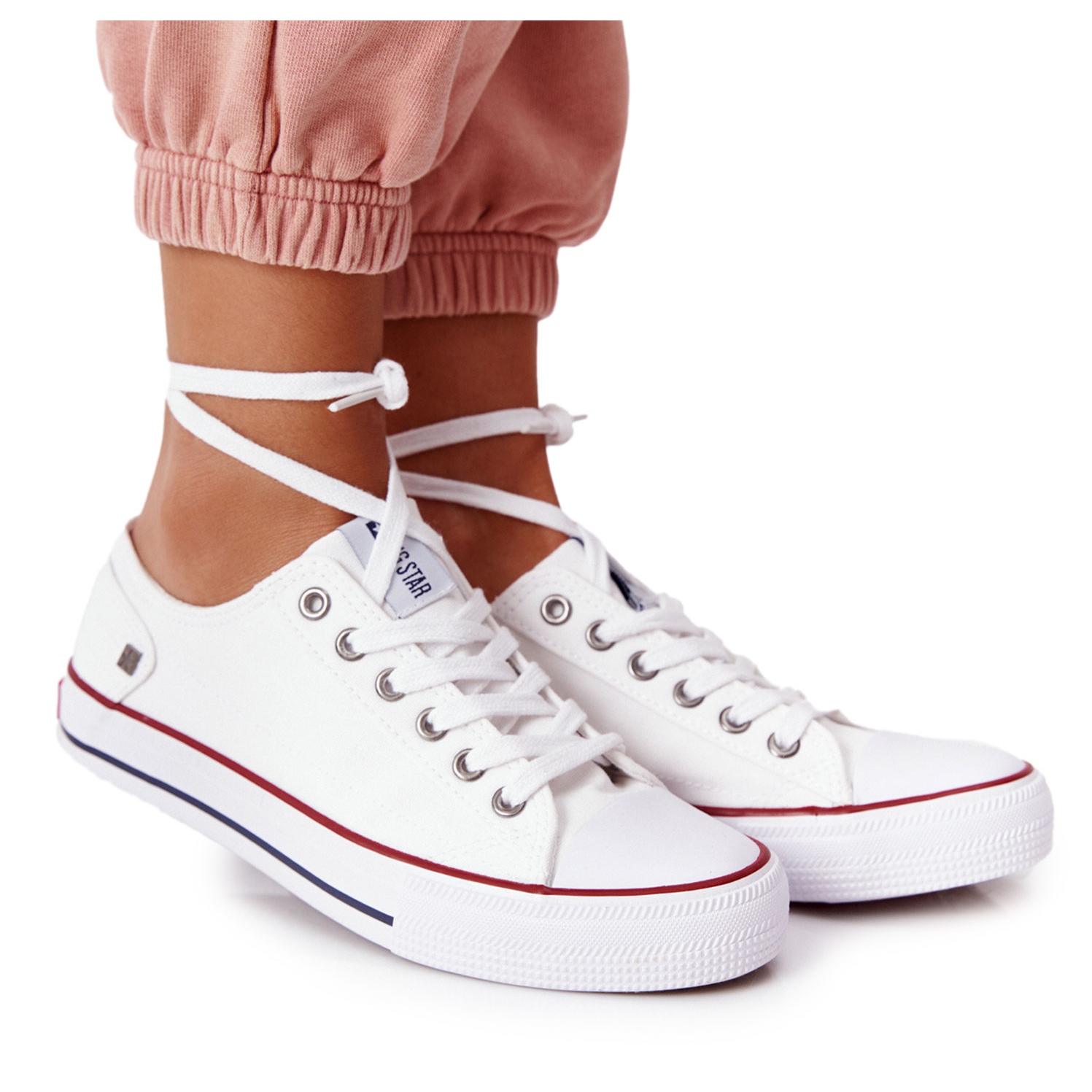 Klasične, tenisice s niskim oldschool - model nadahnut ikoničnim stilovima iz 70 -ih, koji godinama uživa u nepokolebljivoj popularnosti. Bijela, čipkasta tkanina s karakterističnim gumenim nožnim prstima daje bezvremenski izgled, a istovremeno tješi svaki dan. Potplatni potplat ukrašen logotipom Big Star pruža određeni korak i u urbanim uvjetima i tijekom vikend izleta.