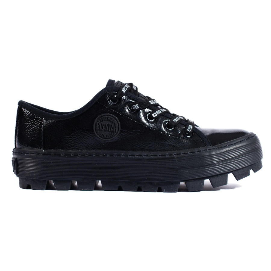 Lagan, elegantan prijedlog Big Star - tenisica KK274044 izrađena od lakirane ekološke kože u crnoj boji. To je kombinacija sportskog lika s urbanim stilom - savršen za svakodnevne stililizacije za proljeće i ljeto.