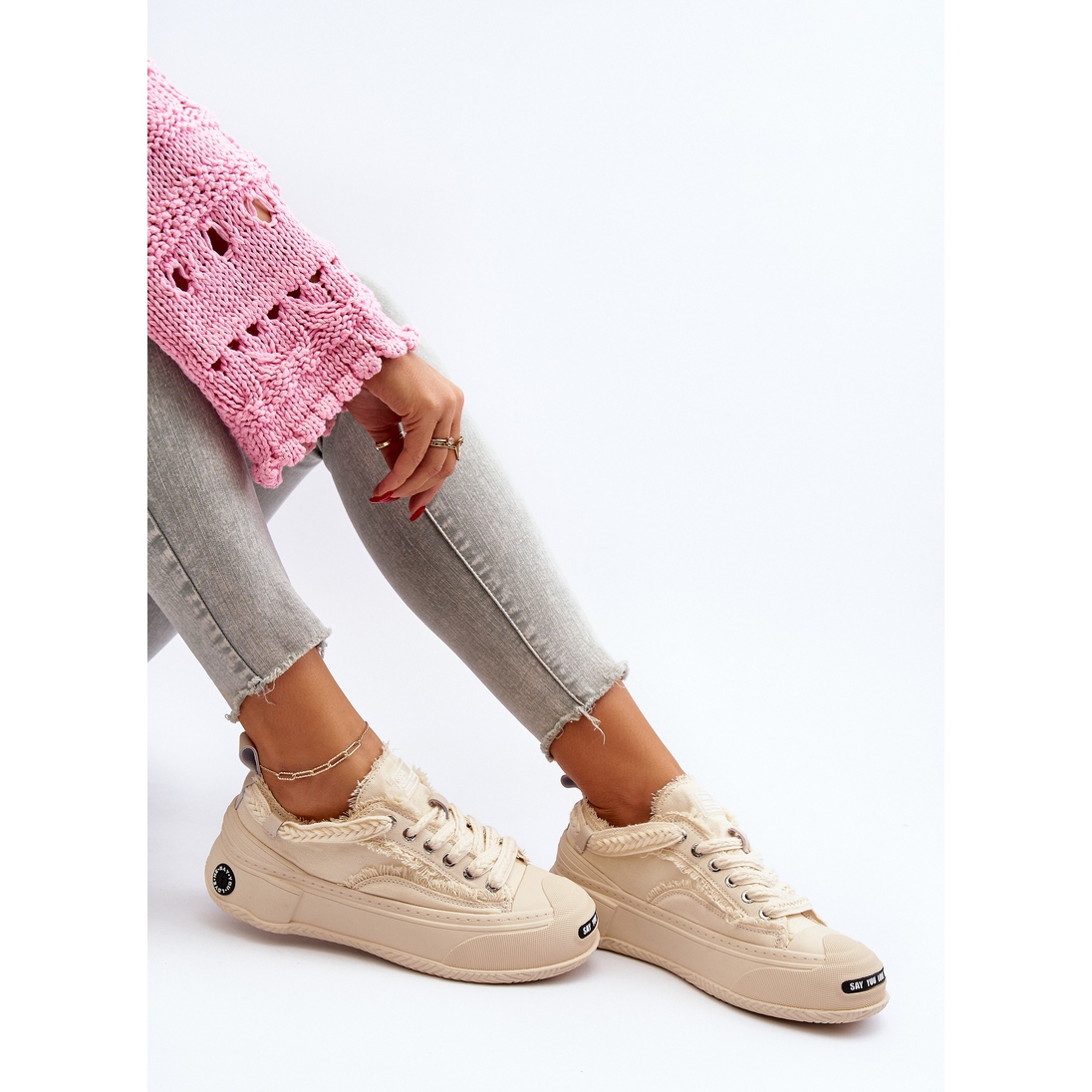 Njihova masivna platforma od 4,5 cm, izrađena od gumenog materijala, ne samo da dodaje stil, već i ublažava svaki korak, što ih čini savršenim za duge šetnje. Okrugli vrh i kopčanje na vezanje osiguravaju pravilno pristajanje uz nogu, a vanjski materijal u obliku tkanine čini cipele prozračnima i laganima.