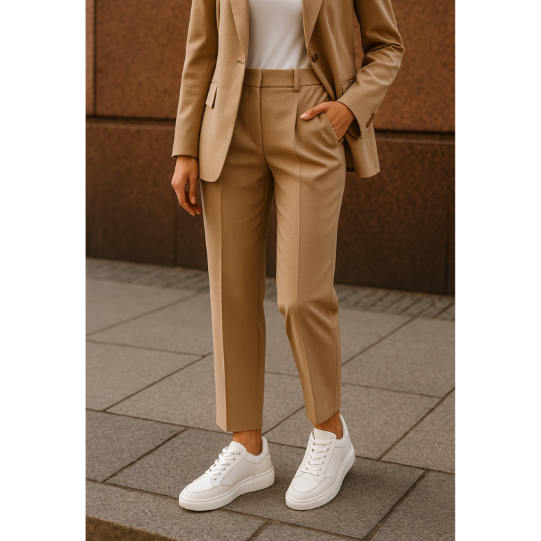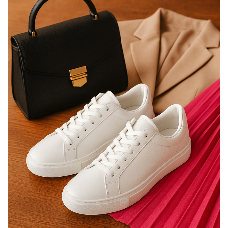 Trend povezivanja odijela s tenisicama osvaja svijet poslovne mode. To je idealno rješenje za žene koje žele izgledati profesionalno, dok se tijekom dana osjećaju ugodno. Odaberite minimalističke modele u neutralnim bojama - bijele, crne ili bež. Kožne tenisice dodati će eleganciju dok antilop uvodi mekoću. Sjetite se proporcija - odaberite ogromne cipele za šire hlače, vitkije modele za uži. Ovaj izgled izvrsno funkcionira na poslovnim sastancima, gdje se broji kreativnost.