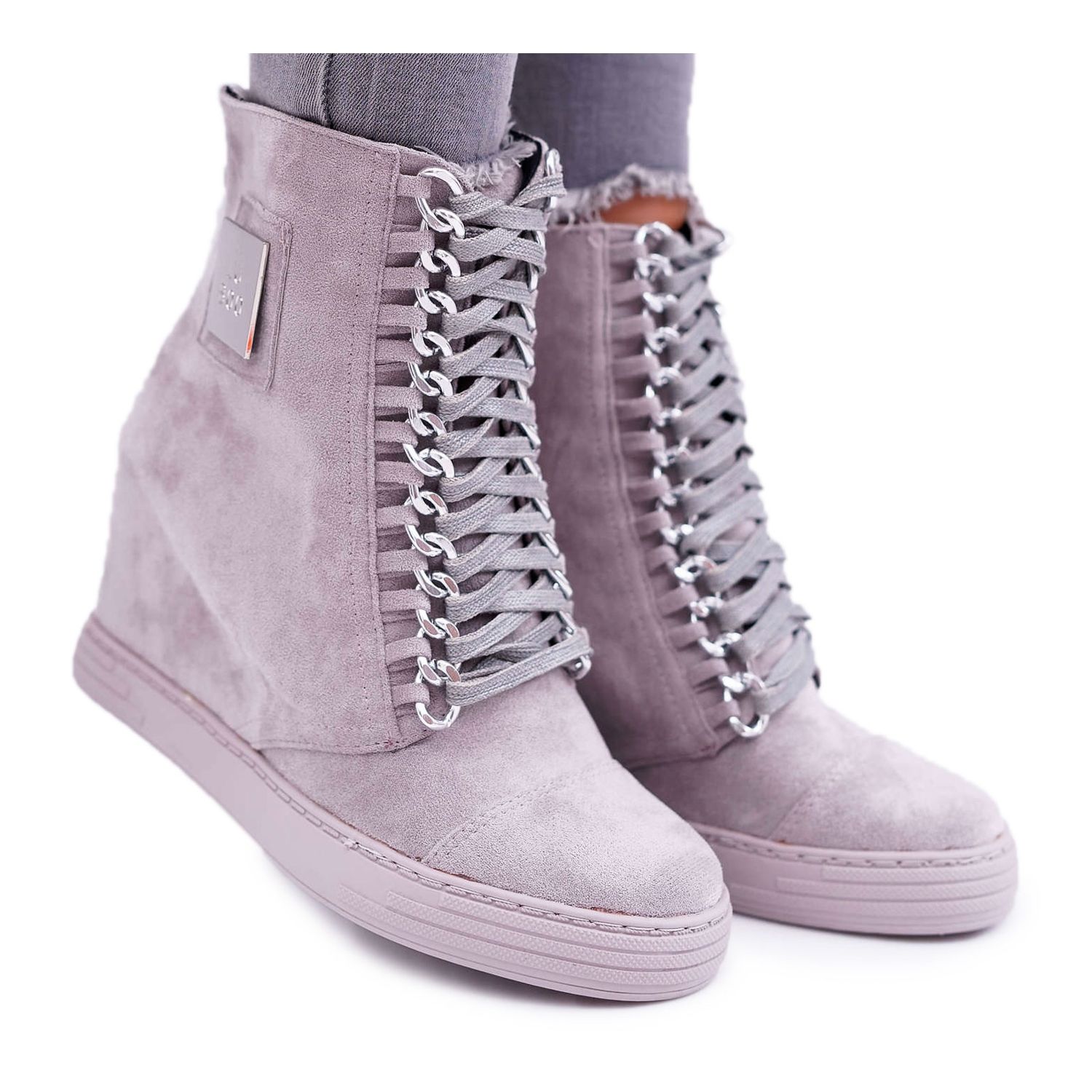 Pojedinosti: Ženske tenisice Lu Boo s lancima Suede Grey Monica siva
