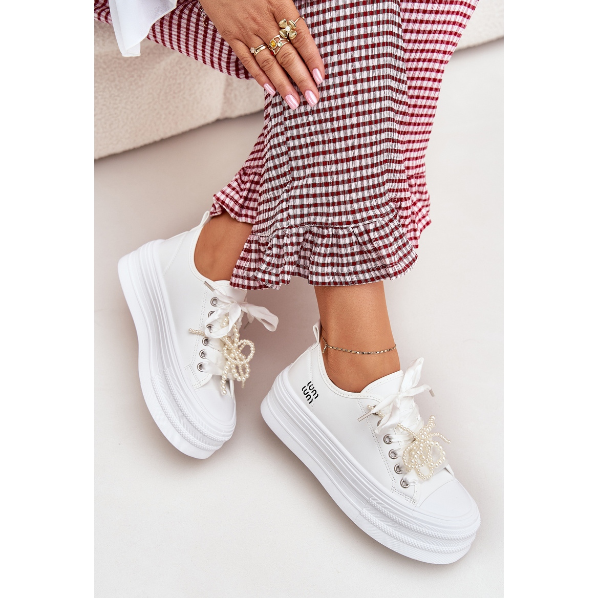 Detalji: Ženske tenisice na platformi s ukrasnim vezanjem bijele boje bijela