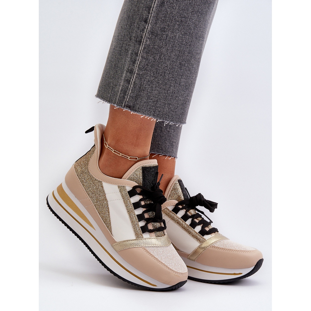 Pojedinosti: Ženske tenisice na wedge i platformu sa šljokicama, Gold Rafani zlatni
