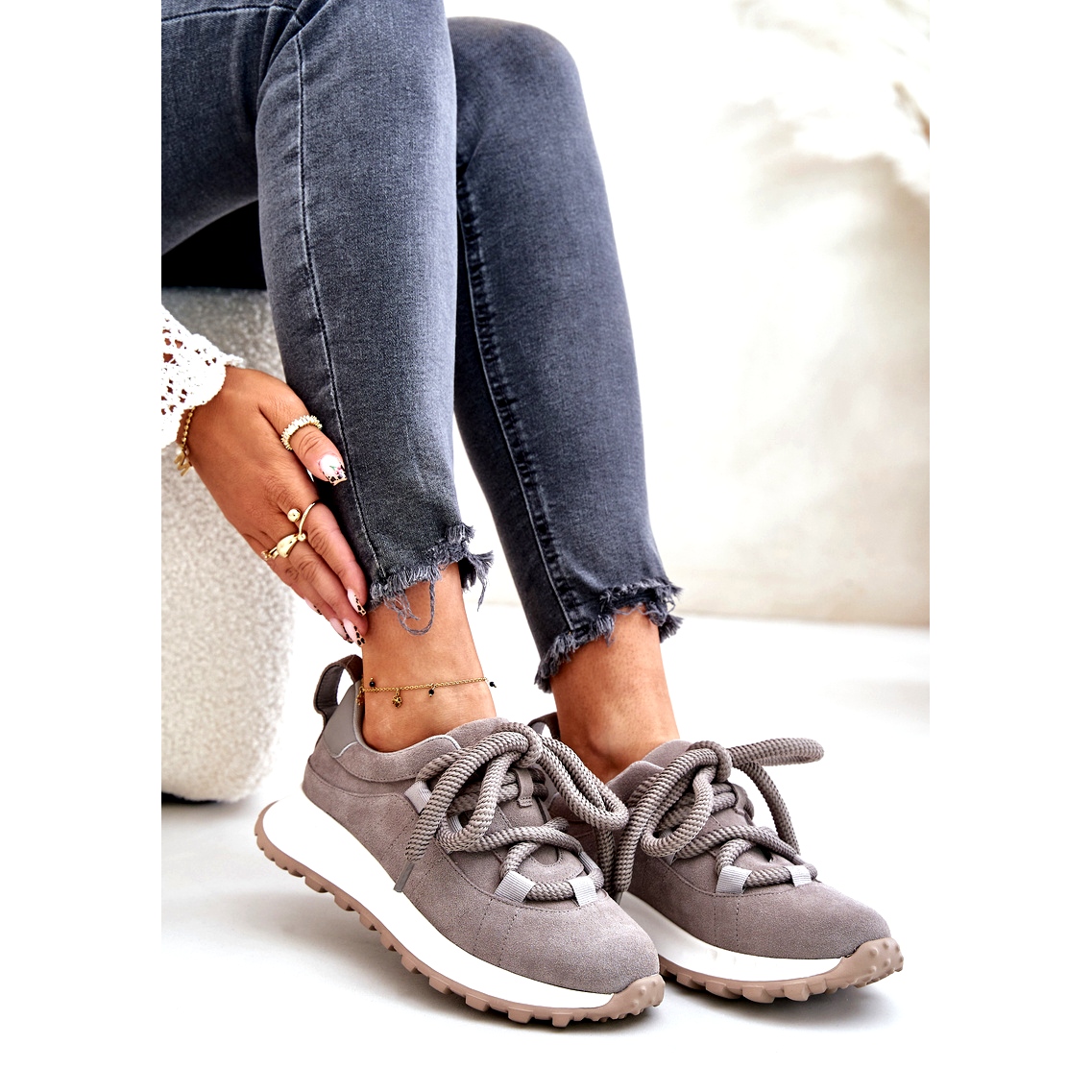 Pojedinosti: Ženske tenisice od brušene kože s debelim vezicama Artiker 54C1465 Siva
