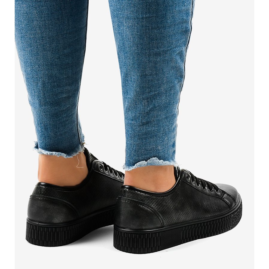 Ove tenisice do gležnja izrađene su od kvalitetnog crnog materijala nalik na kožu, koji ne samo da izgleda estetski, već je i praktičan u svakodnevnoj uporabi. Karakteristična značajka ovih puzavica je izrazita platforma od tri centimetra, koja ne samo da dodaje visinu, već također pruža stabilnost i udobnost. Dodatna prednost je profilirani, okrugli nos koji jamči prostor i udobnost za prste.