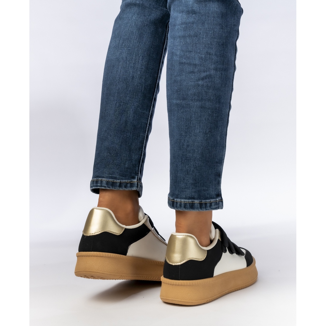 Ženske tenisice s metalnim crno -bijelim umetcima crna