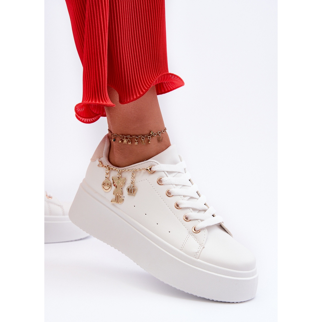 Detalji: Ženske tenisice s platformom i privjescima, bijela Tivissa