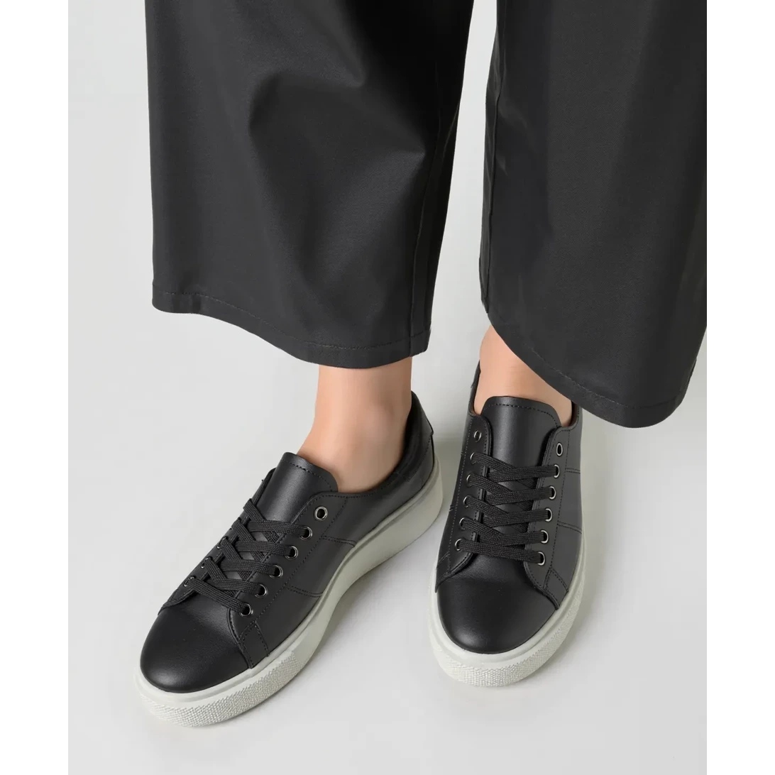 Ženske tenisice u ponedjeljak All Black je savršen izbor za žene koje traže elegantne, a istovremeno ugodno obuću svaki dan. Klasična crna boja u kombinaciji s modernim, kontrastnim bijelim potplatom stvara minimalistički, ali izražajni stil koji savršeno ide s raznim odijelima.