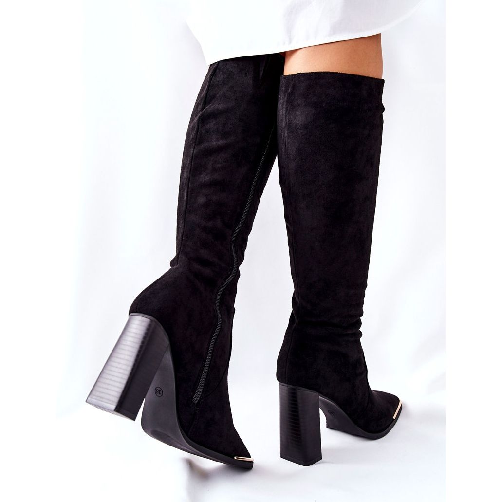 Otkrijte eleganciju i udobnost u najnovijem modelu ženskih čizama PS1. Ove prekrasne crne čizme klasičnog kroja savršeno će ukrasiti svaki stajling dodajući dašak luksuza zahvaljujući zlatnom vrhu. Model montiran na stabilan, delikatan stupić pruža ne samo izvanredan izgled, već i udobnost nošenja, mršaveći figuru.
