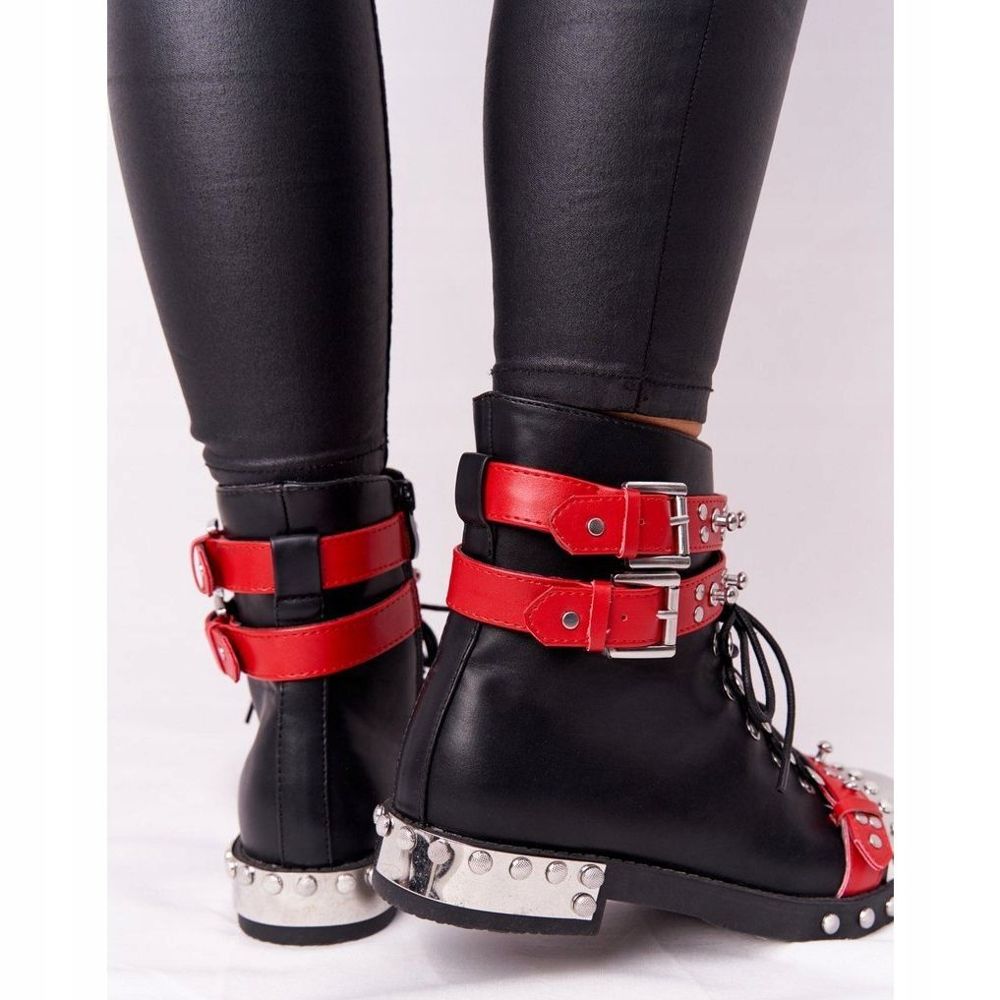 Ženske tople čizme radnice sa rhinestones crnim i crvenim Lu Boo crna
