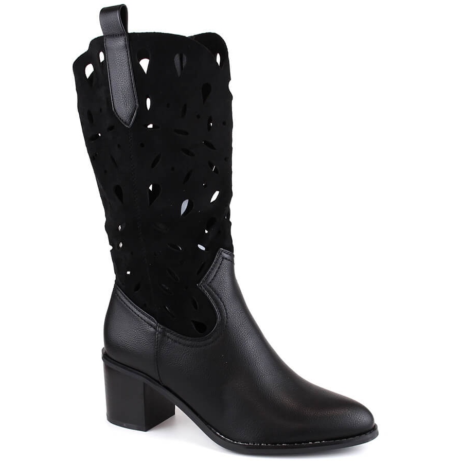 M. DASZYŃSKI Ženske tople otvorene kaubojske čizme crne M.Daszyński MR2337-3 crna