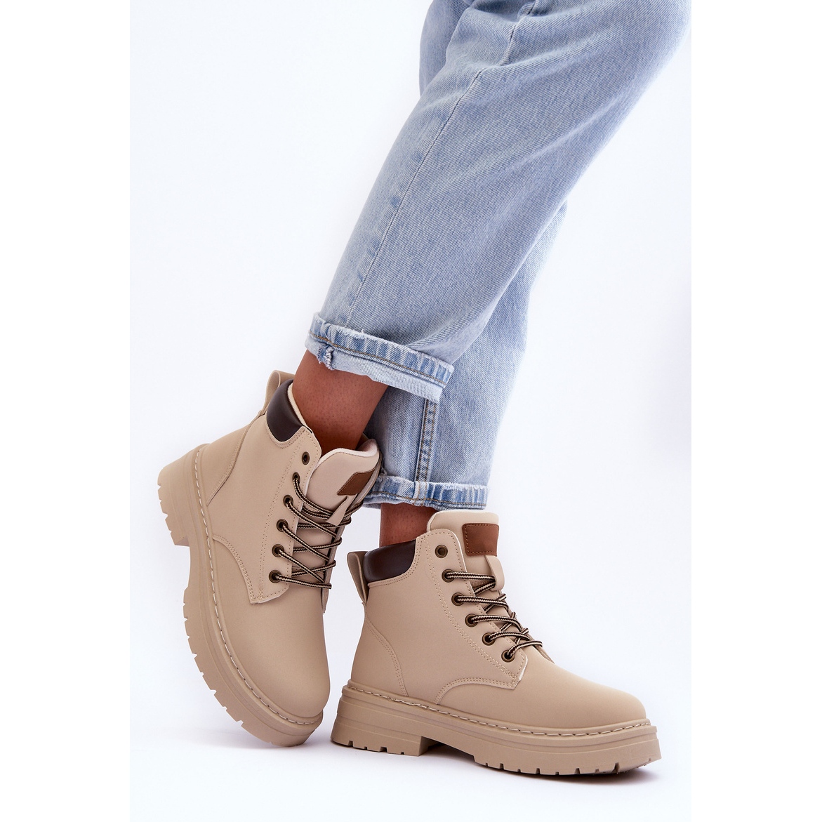 Corbin stilski i praktični traper savršen su izbor za hladnije dane. Izrađena od meke ekološke kože, ugrađene na stabilnu platformu i laganu petu, jamči udobnost tijekom svakodnevnog trošenja i izolacije s pokrivača obuće pružaju ugodnu toplinu. Univerzalna, lagana bež boja sa smeđim naglascima lako ih prilagođava mnogim stilovima - od ležernog do više urbanog.