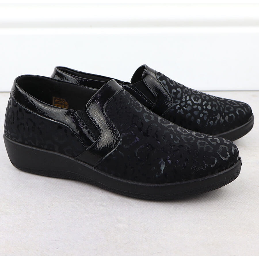 Pojedinosti: Ženske udobne cipele u leopardovom printu umetnuli su Unisoft 8910 crna