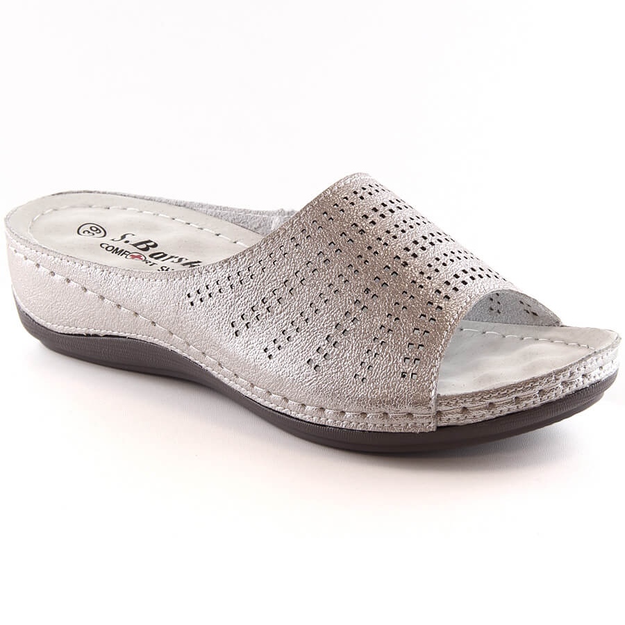 Pojedinosti: Ženske udobne kožne papuče na klin rozo zlato S.Barski BN292 zlatni