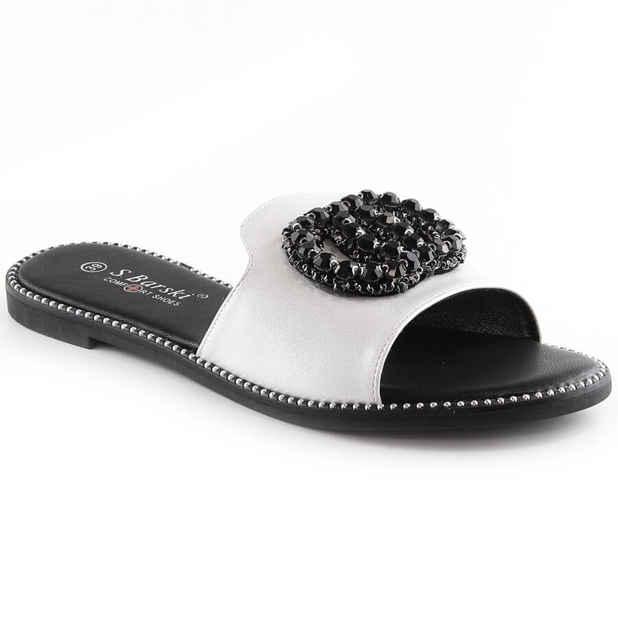 S.Barski Ženske udobne ravne papuče s cirkonima srebrne S.Barski Kv 520-30 srebro