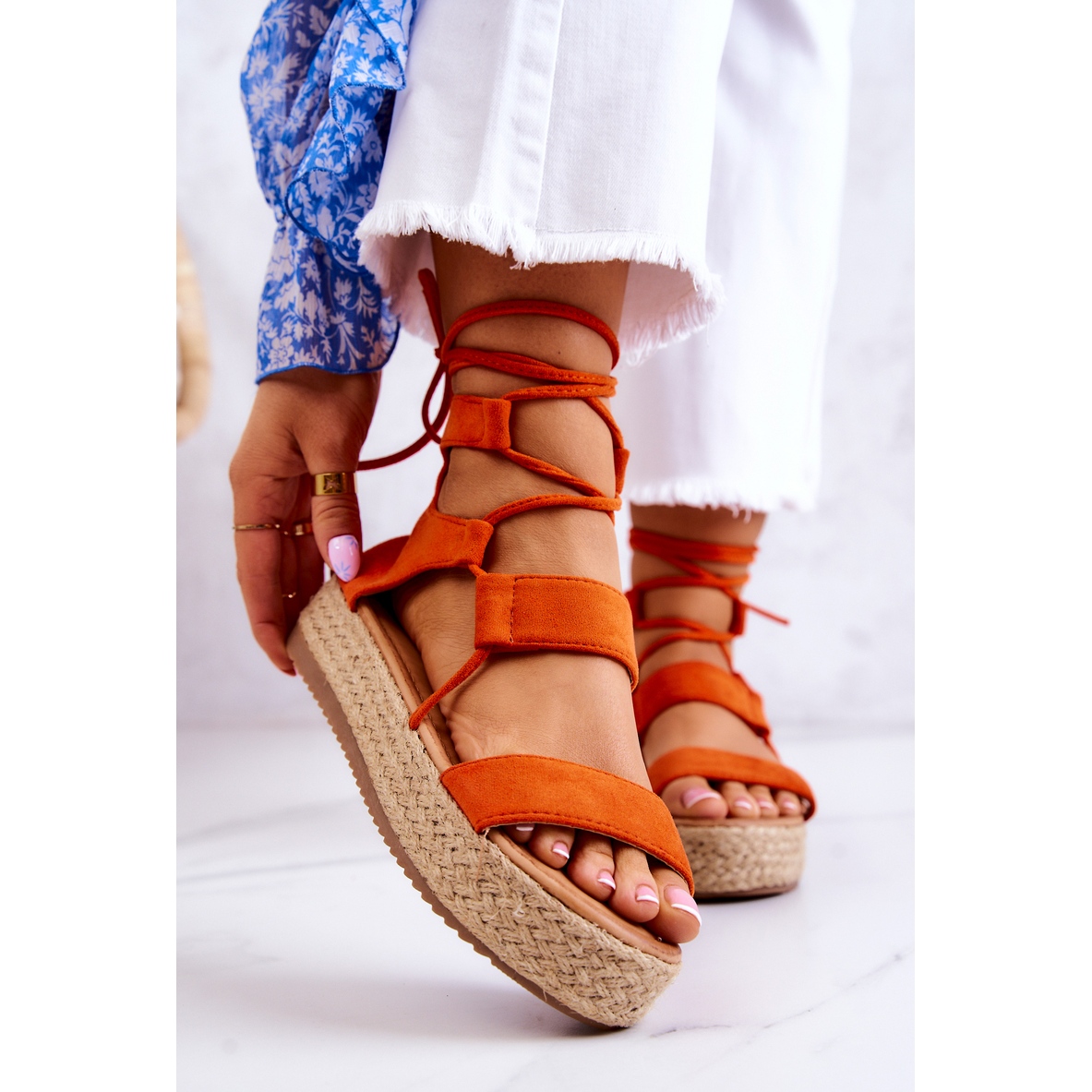 Predstavljamo vam ženske FW1 sandale s platformom u narančastoj boji koje oduševljavaju izgledom i udobnošću nošenja. Ove prekrasne espadrile na vezanje savršene su za svaku priliku - od svakodnevnih šetnji do večernjih izlazaka s prijateljima.