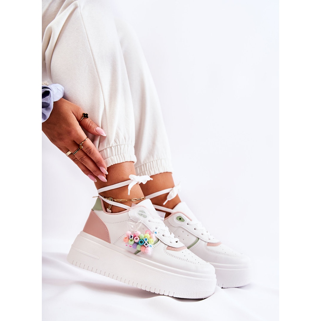 Detalji: PS1 Ženske vezane sportske tenisice bijelo-ružičasta Manila bijela