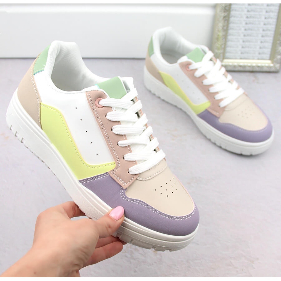 Ove šarene tenisice bile su izrađene od ekološke kože, što ih čini ne samo elegantnim, već i ekološki prihvatljivim. Zahvaljujući fleksibilnom pričvršćivanju na čipke, prilagodit će se svakoj nozi, osiguravajući udobnost cijeli dan. Umetanje obloge i tkanine osigurava optimalnu ventilaciju i udobnost, a okrugli nos dodaje lakoću i slobodu.