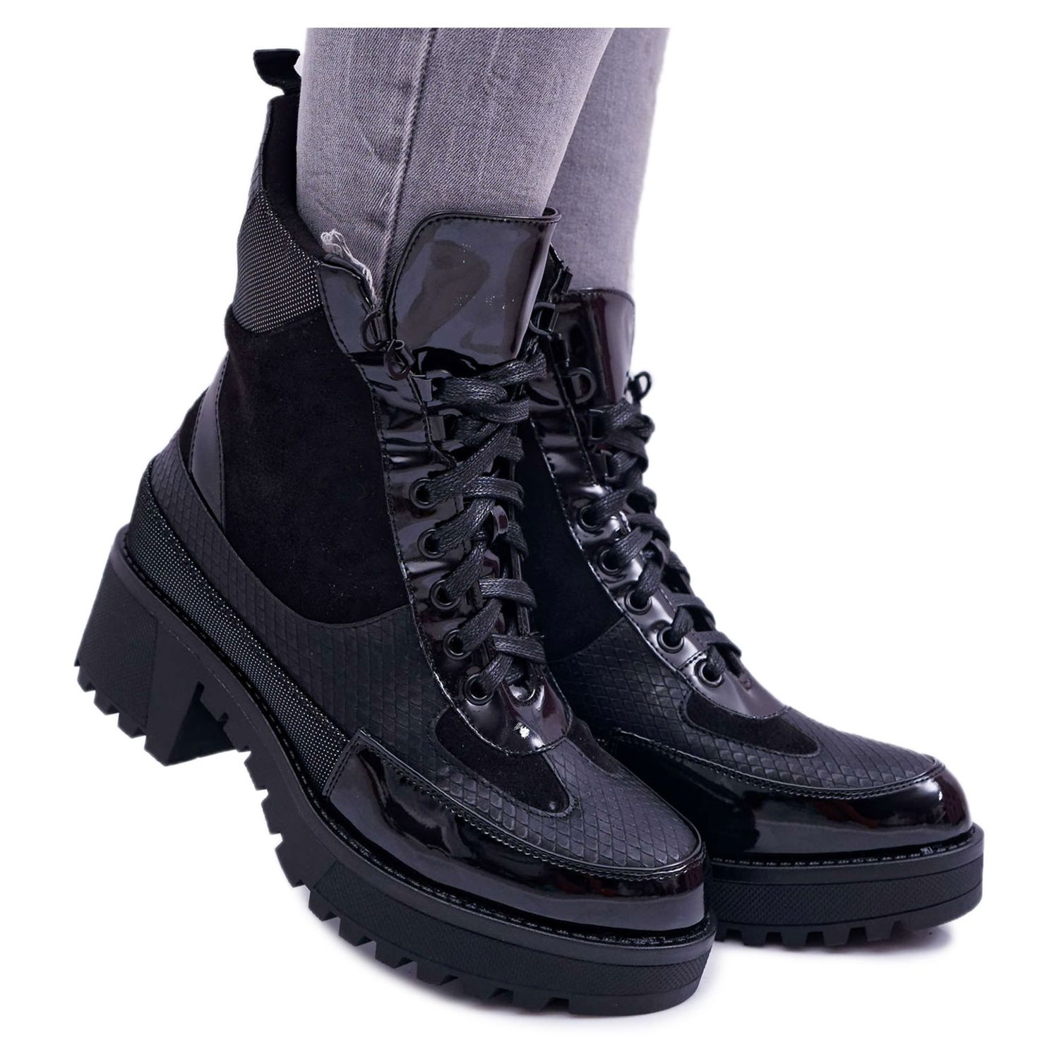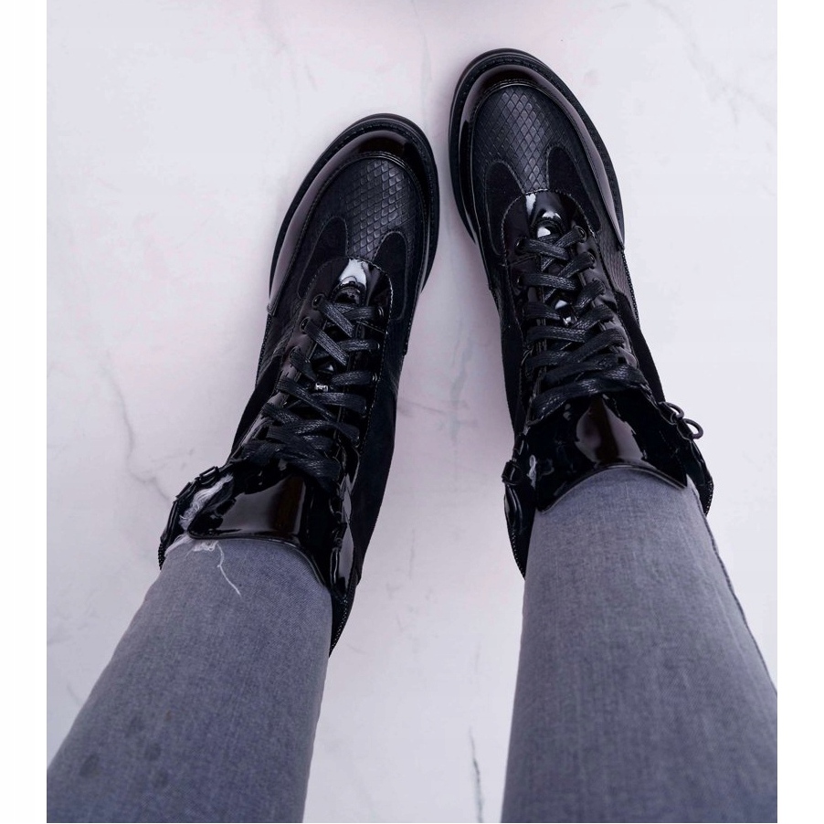 Ove moderne čizme dostupne su u elegantnoj crnoj boji koja savršeno pristaje uz svaki stil. Čipkasti kopč osigurava savršeno pristajanje, dok sintetički potplat povećava udobnost korištenja.