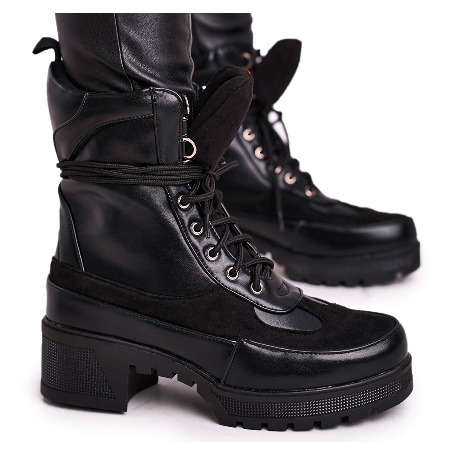 FS1 Ženske visoke čizme na vezanje Black Ridley crna