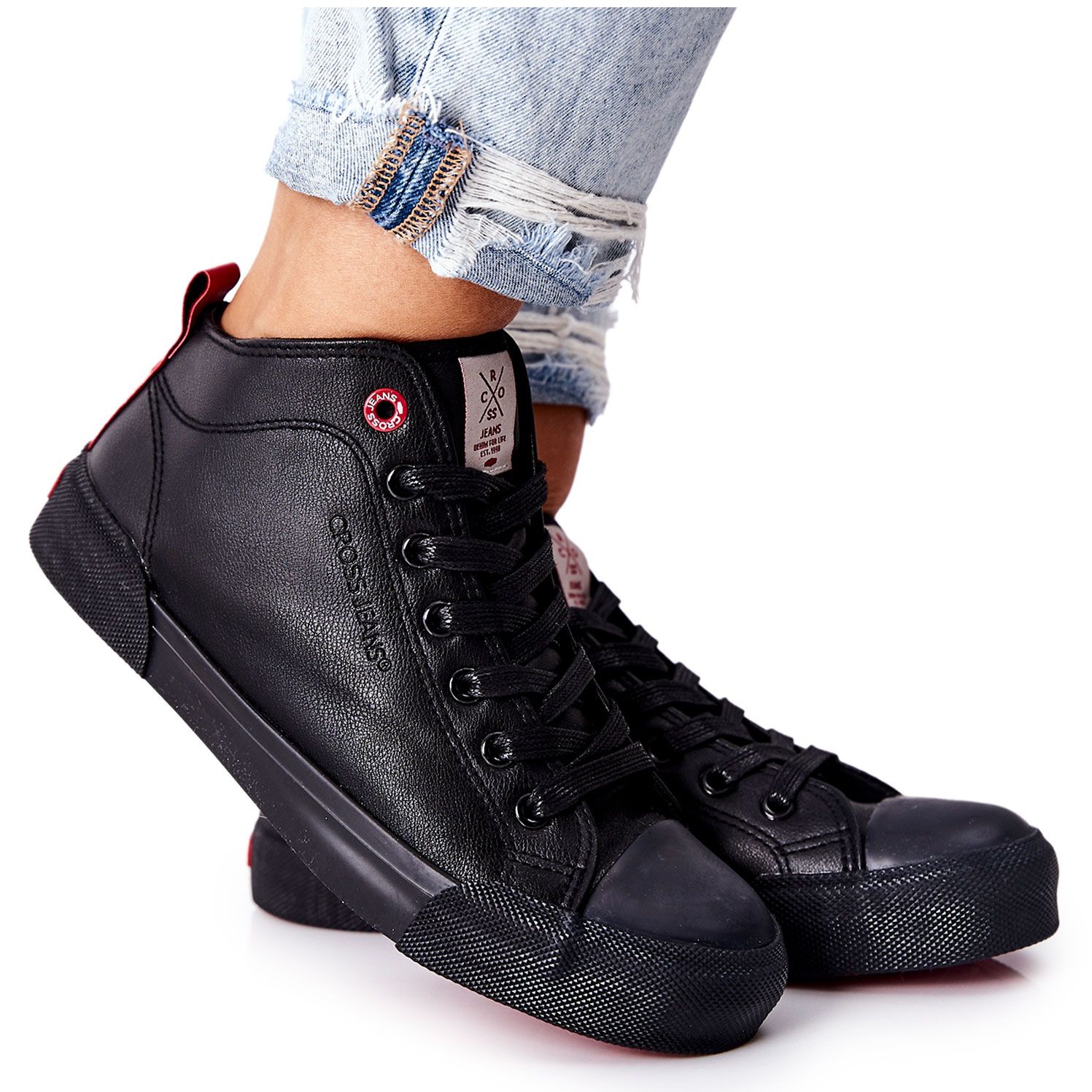 Ženske visoke tenisice Cross Jeans II2R4032C - klasik u modernom izdanju. Crni, minimalistički dizajn i gornji dio ekološke kože do gležnjača čine da se model savršeno podudara s svakodnevnim, urbanim stilu - od šetnje gradom do sastanka s prijateljima. Zahvaljujući višoj gornjoj strani, cipele će također raditi na hladnijim danima.