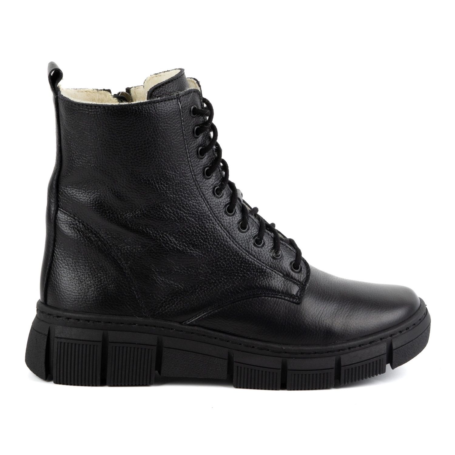 Unutrašnjost čizama pažljivo je izolirana prirodnom vunom, koja jamči izvrsnu toplinsku udobnost čak i u najhladnijim zimskim danima. Debeli, izražajni potplat ne samo da daje karakter cipela, već i učinkovito izolira od hladnoće, osiguravajući stabilnost i dobro prianjanje na mnogim površinama.