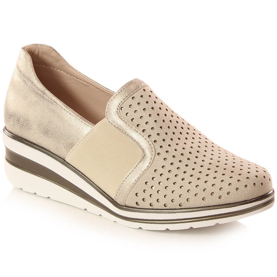 Ovu obuću ističe ažurni uzorak koji osigurava odgovarajuću cirkulaciju zraka, što je iznimno važno u toplijim danima. Zlatna boja dodaje šik i čini da se cipele savršeno slažu uz ležerne i svečanije kombinacije.